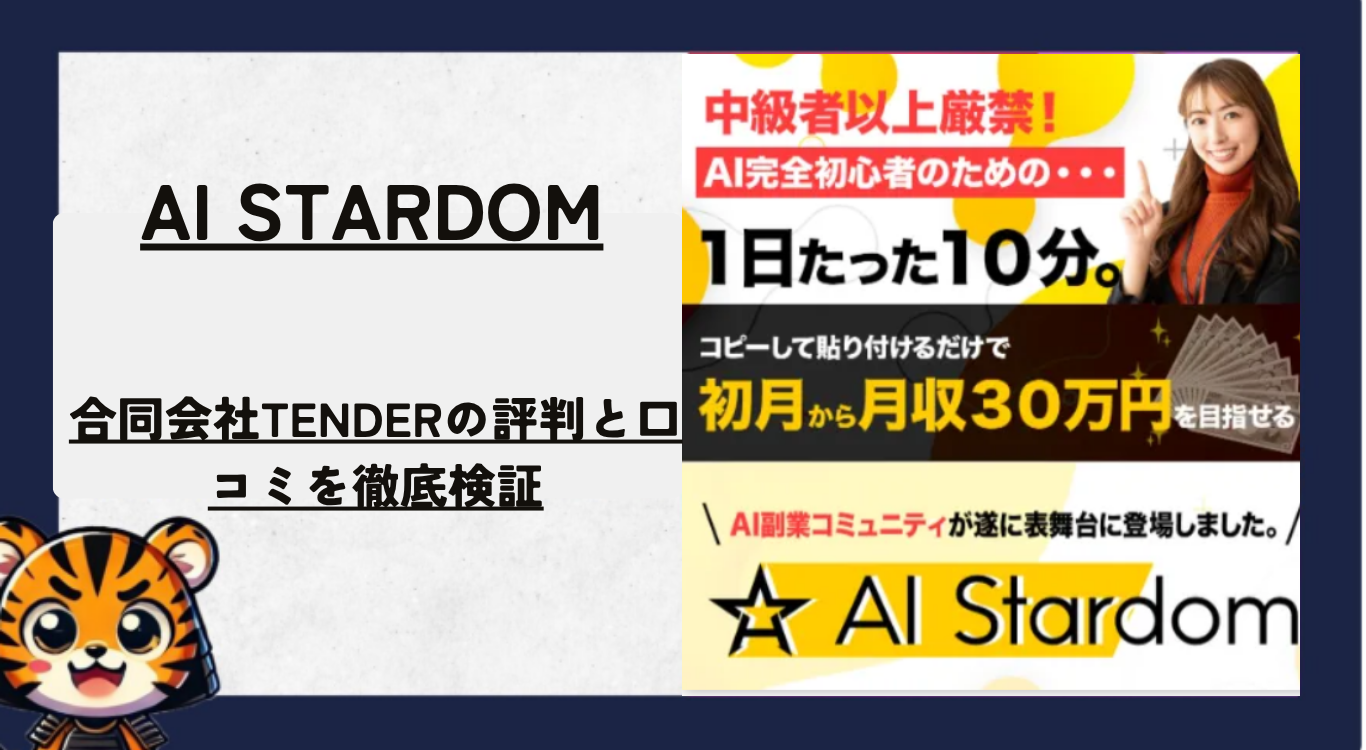 「AIスターダムは合同会社TENDERが運営する典型的な誇大広告商材です。月30万円なんて物理的に不可能で、AIが生成する記事は収益化できないレベル。絶対に参加してはいけません」