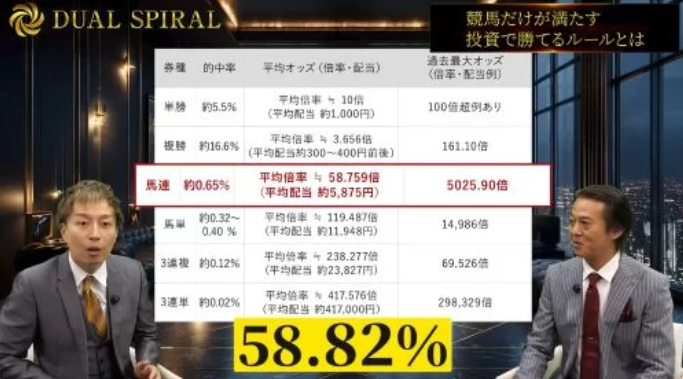 「DUAL SPIRALは鈴木商事株式会社が販売する典型的な誇大広告商材です。毎週20万円なんて物理的に不可能で、特許の主張も嘘。競馬ギャンブルで安定収入は得られません」
