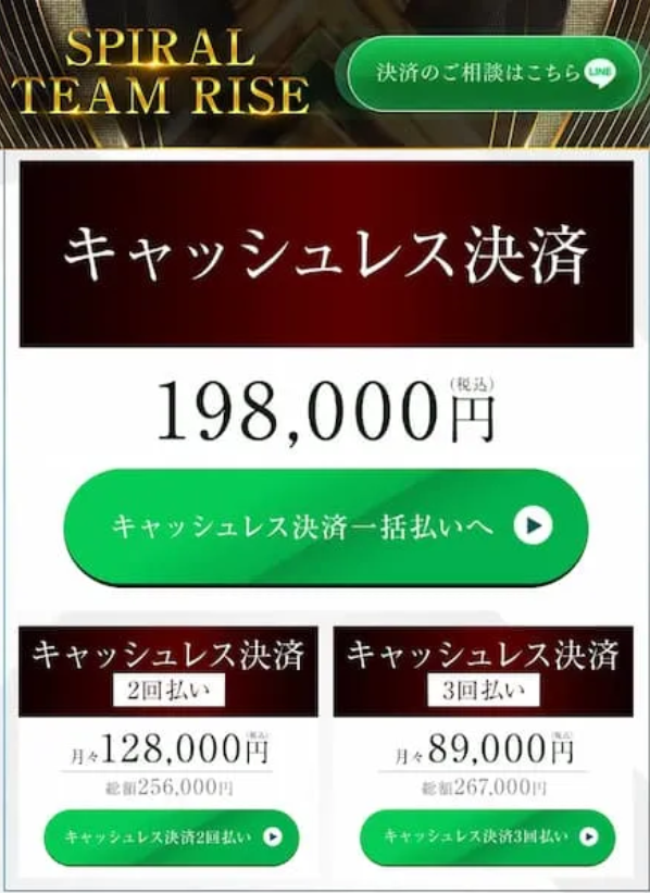198,000円の高額販売 : SPIRAL TEAM RISEへの参加費を要求