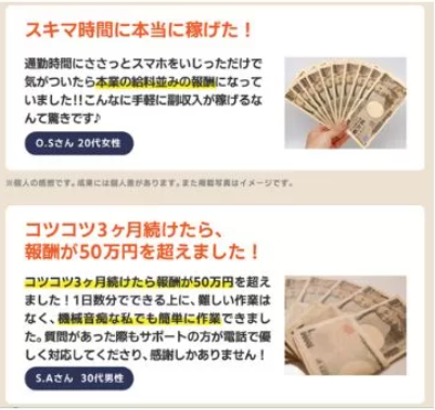 公式サイトには「費用は一切必要なし」「スマホをチェックするだけ」と書かれているが、実際には高額なサポート費用が必要で、SNSアフィリエイトという作業が発生する。