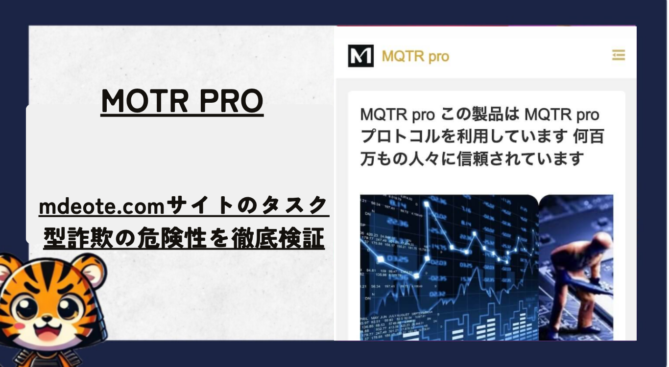 MOTR Pro(MOTR Proグループ)は、mdeote.comというサイトを拠点とする「タスク型副業・暗号資産取引」を装った詐欺案件だよ。