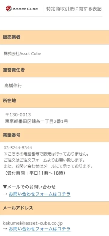 - 運営会社は株式会社Asset Cube(クロスリテイリンググループ)で過去に何度も詐欺的商材を販売