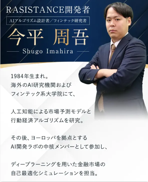 | 開発者 | 今平周吾・AIアルゴリズム設計者 | 架空人物の疑いが濃厚 |